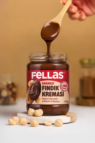 Fellas Kakaolu Fındık Kreması 315gr yoğun fındık ve kakao aroması ile kahvaltılar ve tatlı tarifleri için lezzetli bir sürülebilir kremadır.